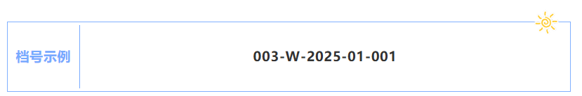 例:根據檔號“003-W-2025-01-001”,可以直接找到XX中學2025年文書檔案第1盒第1份文件。