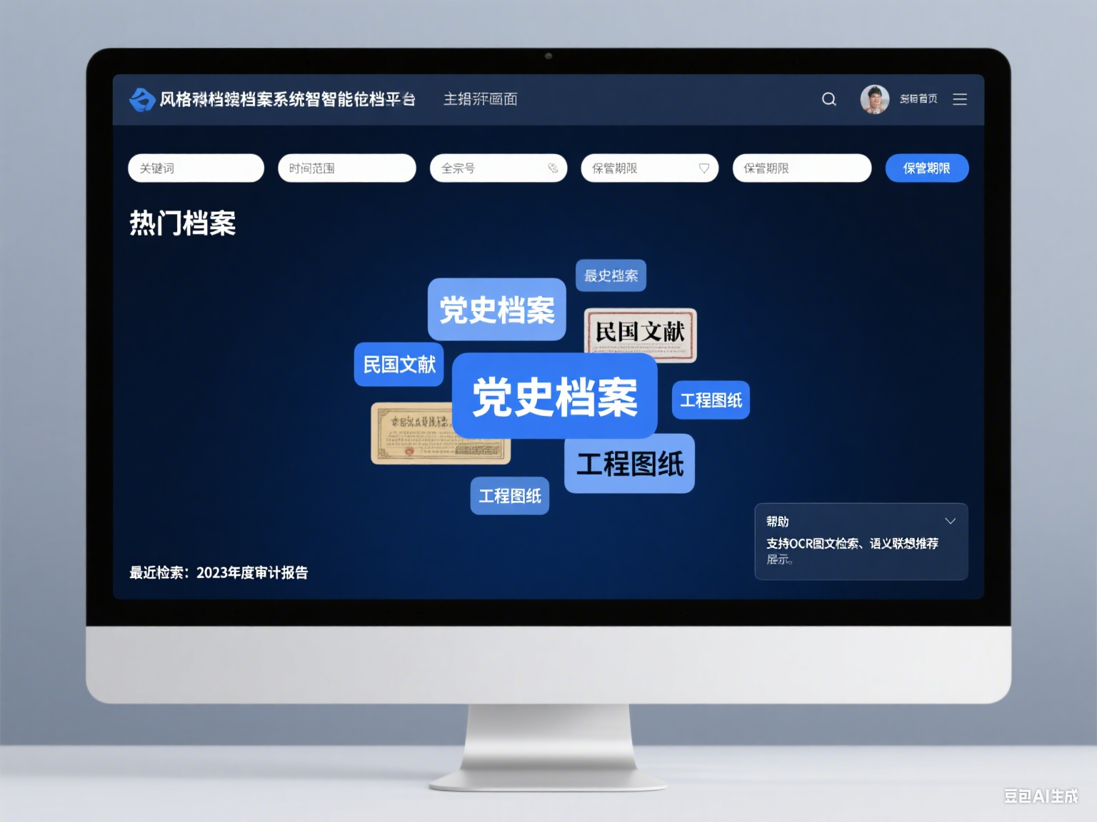 “語義聯想”拓展檢索范圍,當用戶輸入“精準扶貧”時,系統自動關聯“脫貧攻堅”“鄉村振興”等近義詞;當用戶輸入“2023年”時,自動提示“是否包含2022年底或2024年初的關聯檔案”。?