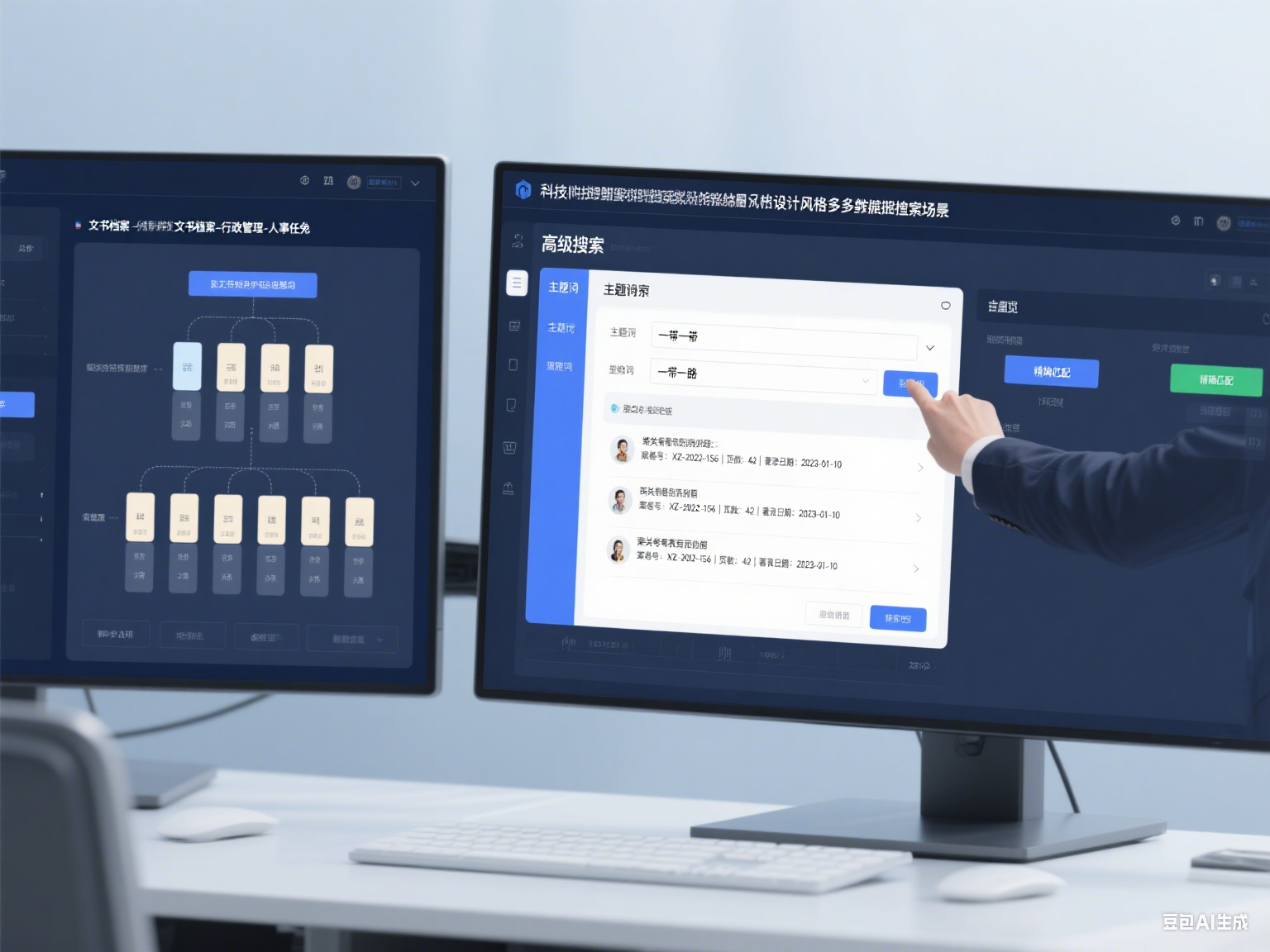 普通用戶更需要“便捷檢索入口”,需突出“關鍵詞模糊檢索”,用戶輸入任意詞匯(如“社保補貼”“2023年會議”),系統自動在題名、摘要、主題詞等字段中匹配,無需記憶專業術語。
